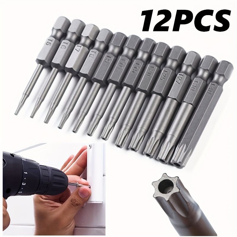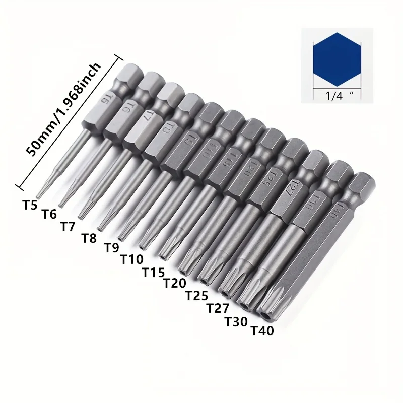 12pcs 50mm 1/4 Hex Shank Hole Security Torx Bits Set - T5-T40 Included!