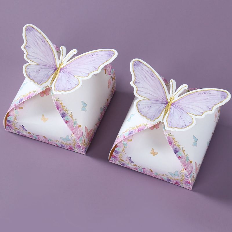 12pcs Candy Gift Box Purple Pink Butterfly Birthday Party Decorations Wedding Supplies Baby Shower Chocolate Cookie Gift Box Bag