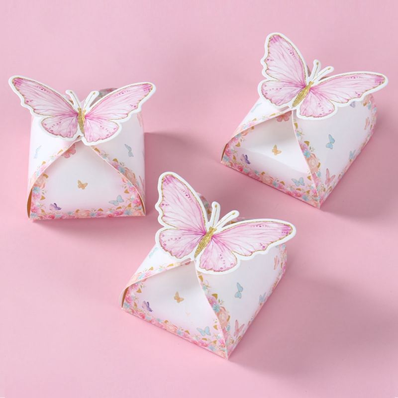 12pcs Candy Gift Box Purple Pink Butterfly Birthday Party Decorations Wedding Supplies Baby Shower Chocolate Cookie Gift Box Bag