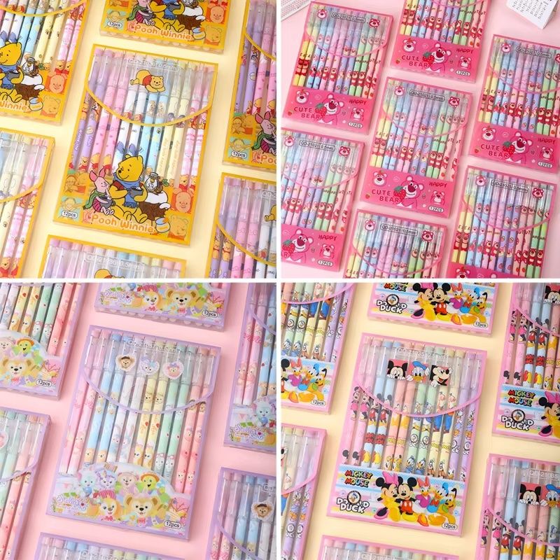 12pcs Disney Erasable Gel Pen Mickey Minne Lotso Pooh Stellalou Student Neutral Pen Office Stationery School Supplies Wholesale
