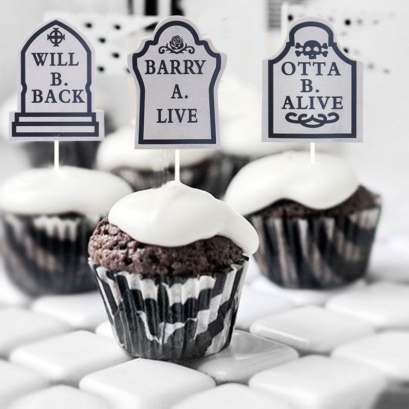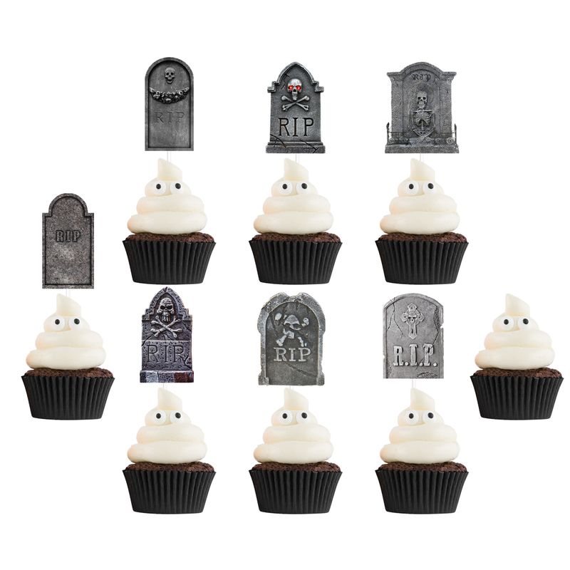 12pcs Halloween Cupcake Toppers Tombstone Graveyard Cake Toppers Scary Cupcake Decoration Table Centerpiece Appetizer Sticks