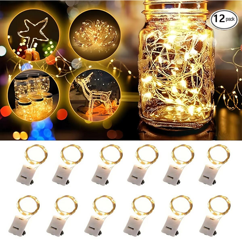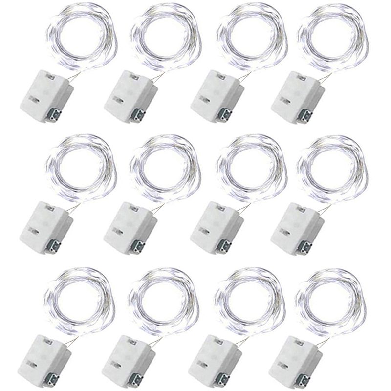 12pcs LED Fairy Light, 3 Lighting Modes, Silvery Wire Fairy Lights, Button Battery Powered, String Lights for DIY Decoration