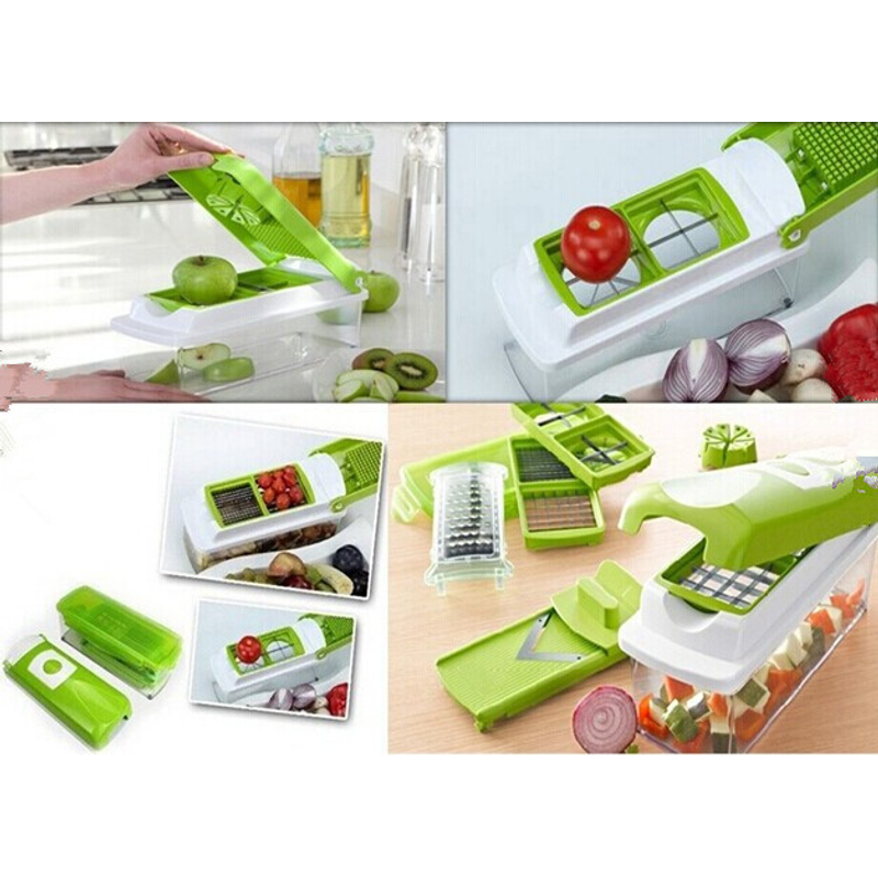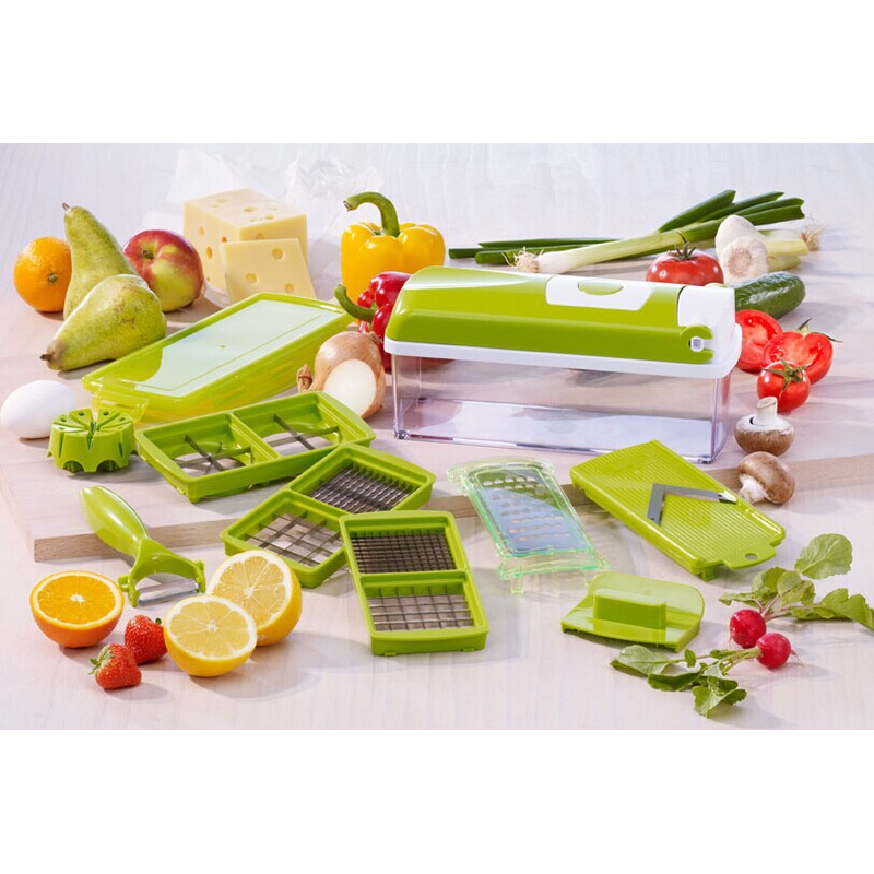 12pcs Multifunctional Vegetable Chopper Handle Food Grate Food Chopper Vegetable Slicer Dicer Cut Kitchen Gadgets Green 1PCS