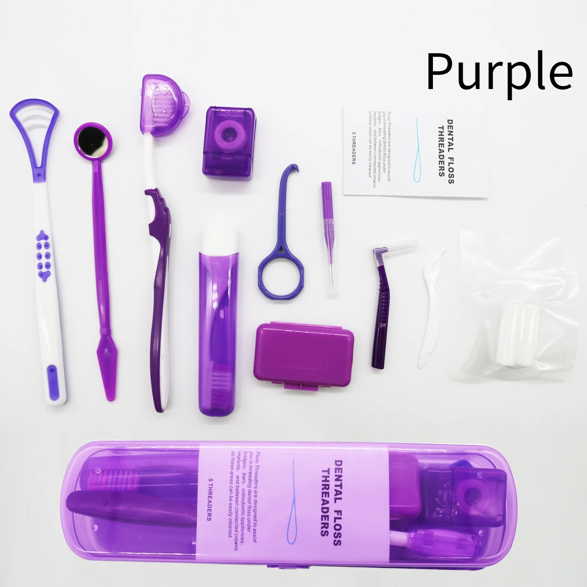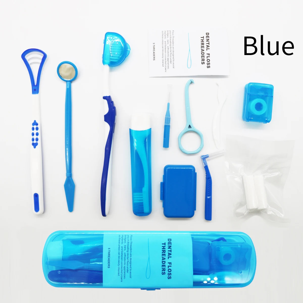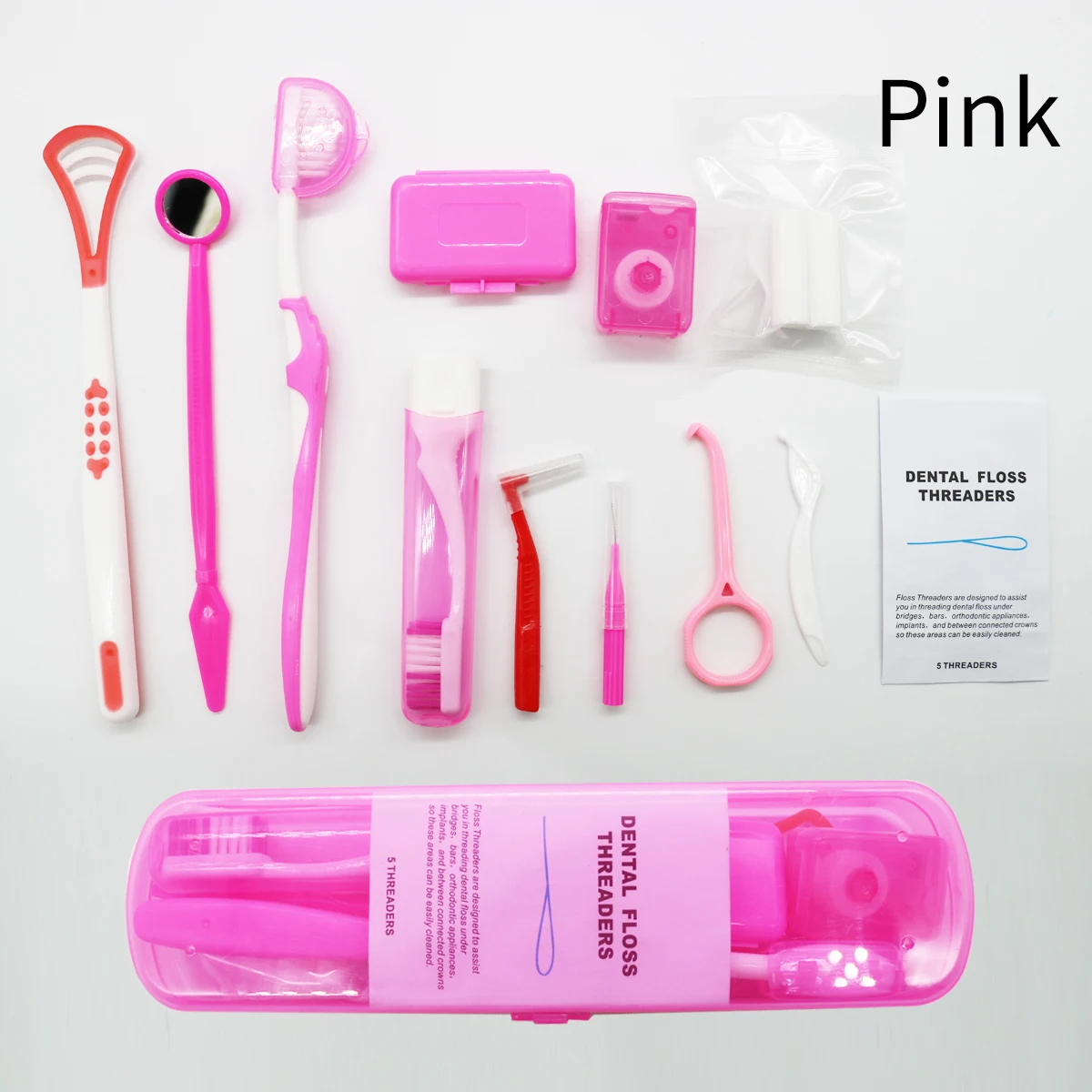 12Pcs Orthodontic Oral Care Cleaning Braces Dental Teeth Kits Toothbrush Foldable Dental Mirror Interdental Brush Cleaning Set