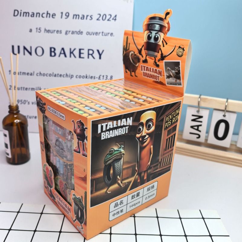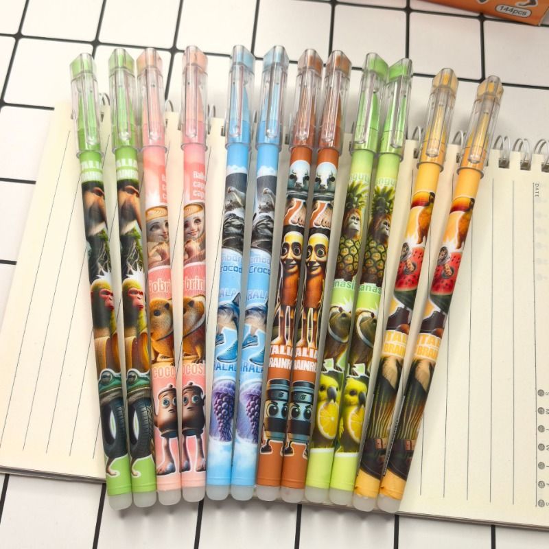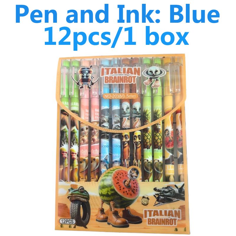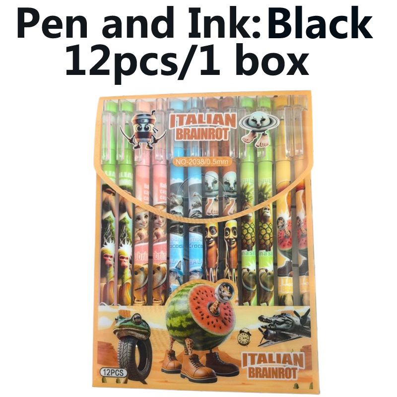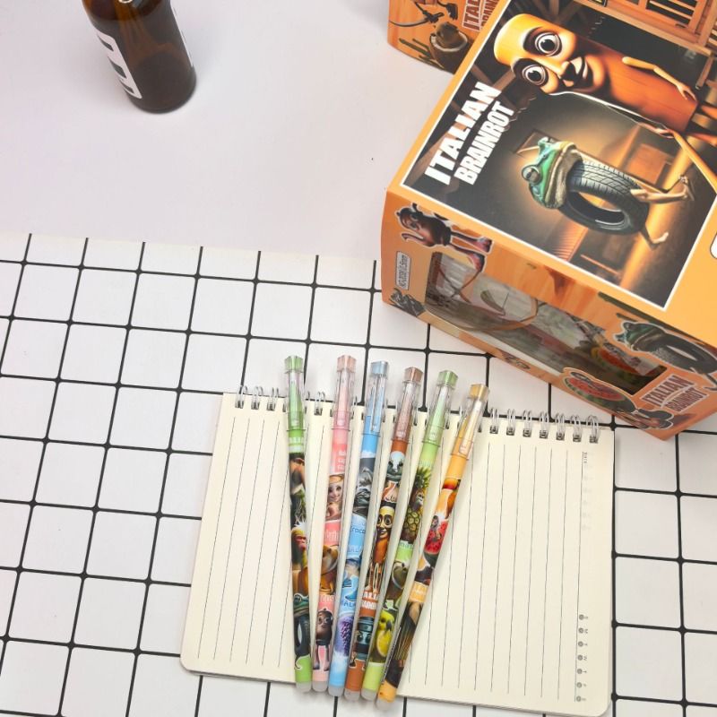 12pcs Tung Tung Sahur Italian Brainrot Wooden Stick Gel Pen Cartoon Signature Pen Individually Packaged Student Stationery Gift