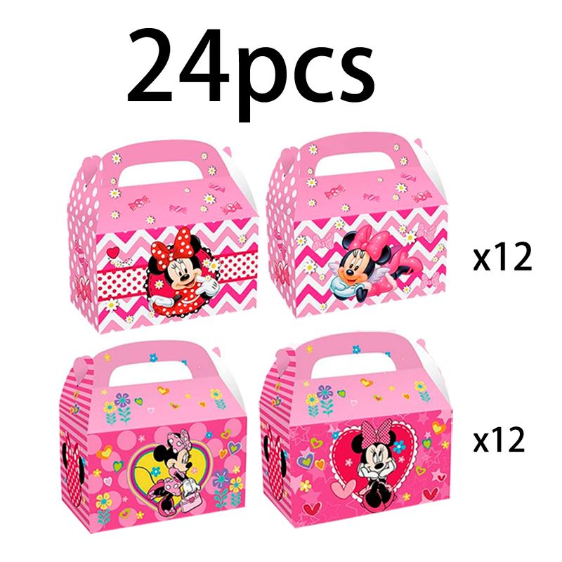12pcs/24pcs, Disney Minnie Mickey Mouse Cartoon Party Gift Bag - Colorful double-sided design, handle, cardboard box, animated b