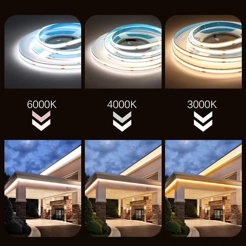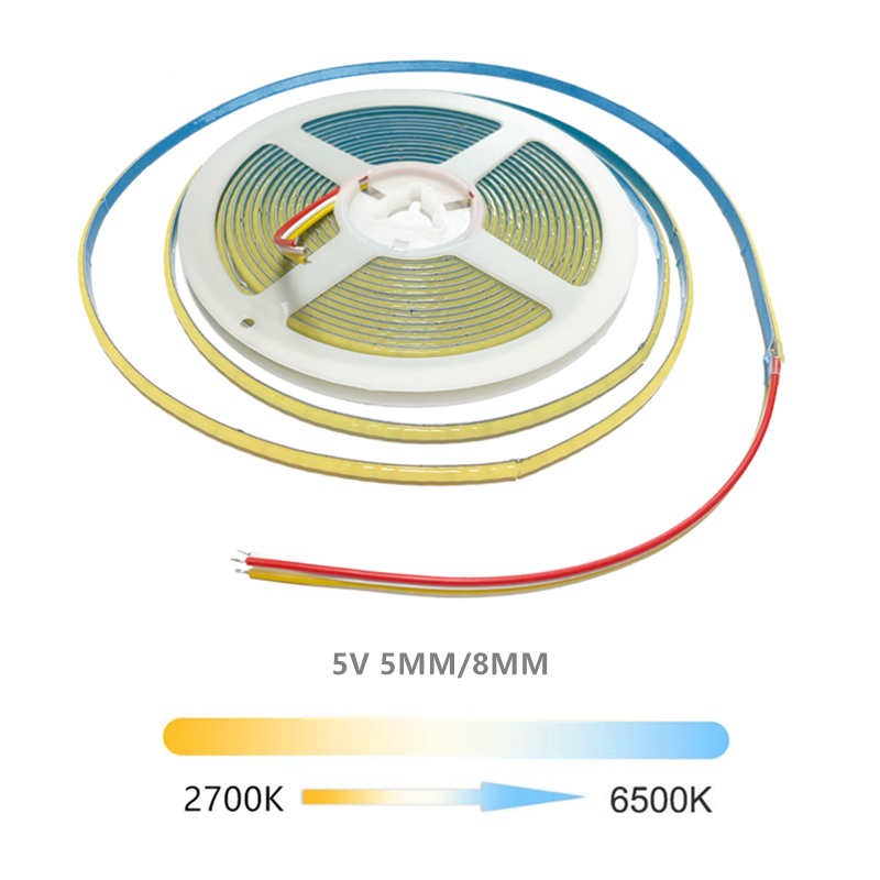 12V 24V DC CCT COB LED Strip Light 2700K to 6500K Color-Changing LED Tape Linear Double Color RA90 Dimmable Ribbon 5mm 8mm Width