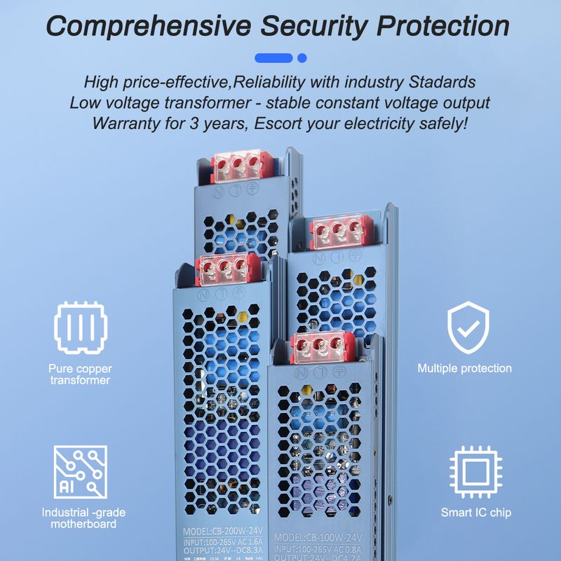 -> This power supply is specially designed for LED lighting, such as: light box billboards, shop signs, home decoration lighting, LED light strips, LED lighting drivers, luminous characters, light box posters, line lights, LED wine cabinet lights etc.