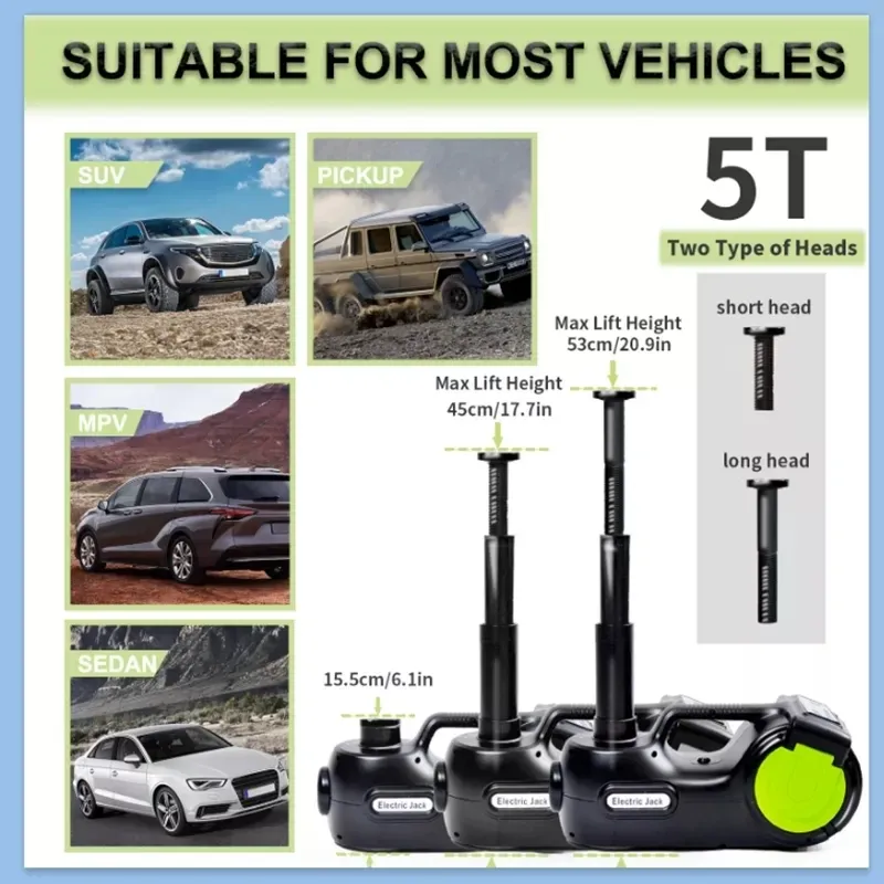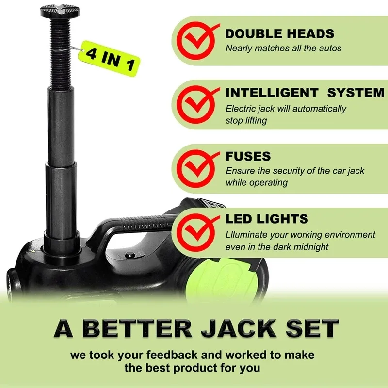 12V 5Ton 3 in 1 Car Jack Electric Hydraulic Jack Protable Tire Jack Electric Wrench Impact Wrench Tire Inflator LED Light