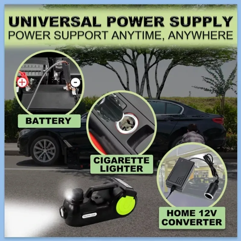 2.Multi-function Electric Hydraulic Jack: the electric jack is a very versatile tool with the function of jack, air pump, and flashlight. A good helper for change the tire quickly.