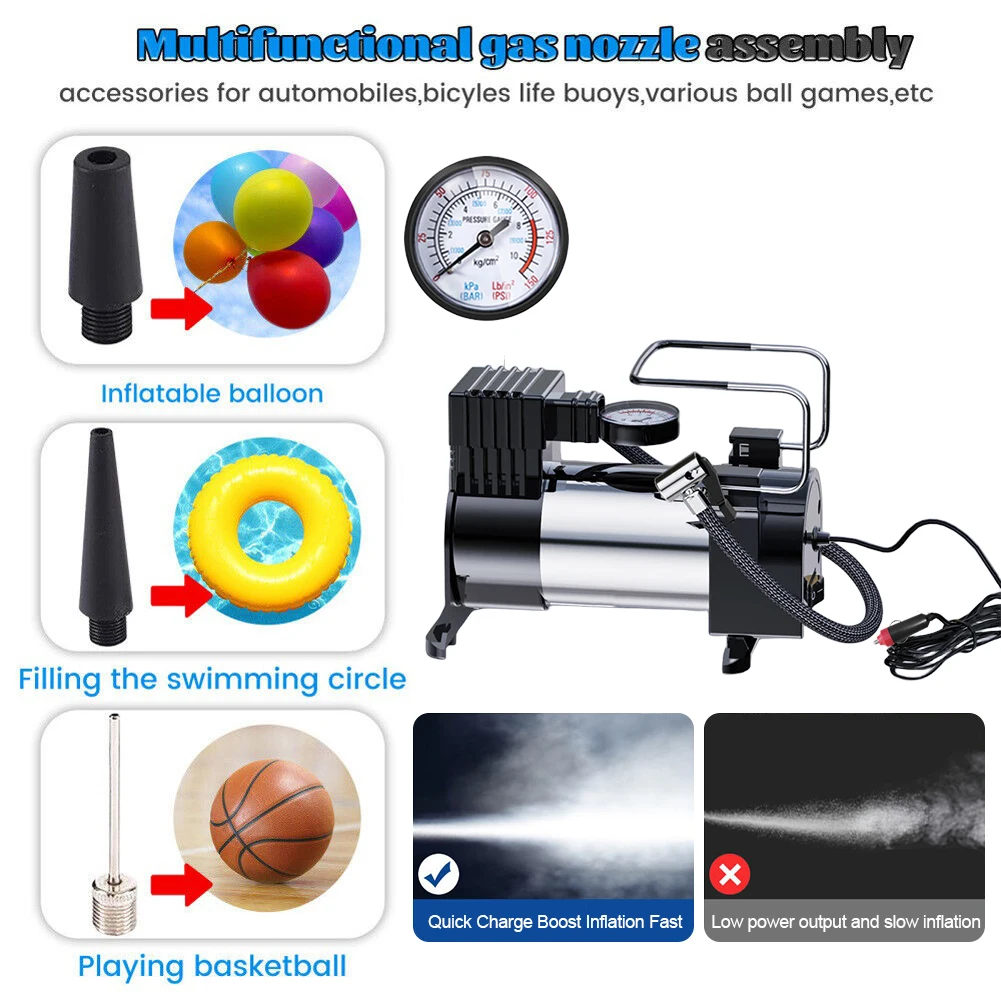 12V Car Tire Pump Cylinder Power System Mini Air Compressor Auto Inflatable Pump Heavy Duty Deluxe Portable Metal Air Compressor