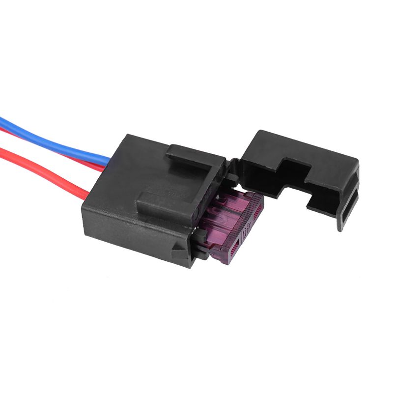 1. connect the the red+ wire from the fuse to battery +; connect the black wire from the reply to the battery -.
