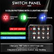 Upgraded 4 Control Modes - This upgraded multifunction switch panel has 4 modes: 1.Toggle (Red Lamp), Constant Light mode; 2.Momentary ignition power (Blue Lamp) , press and hold to turn on, release to turn off; 3.Flash Light Mode (Purple Lamp), flashing at a lower speed which can be used for turn signal; 4.Strobe Mode(Green Lamp), used for emergency light or warning light. You can easily switch between modes in different situation