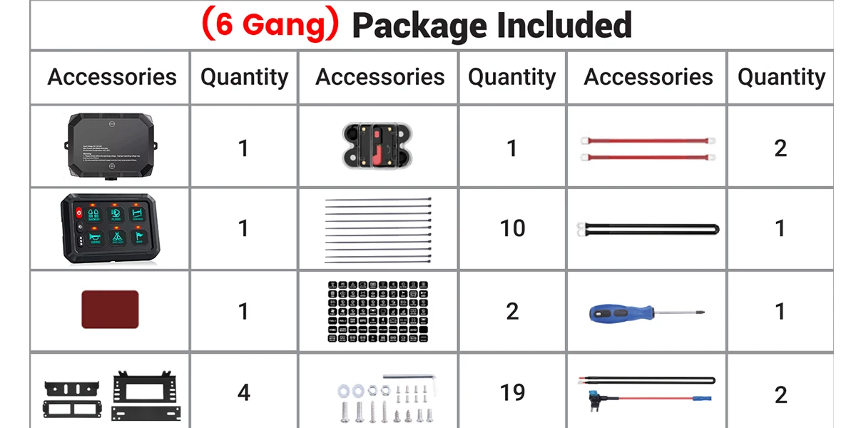 Crafted from robust brushed aluminum, this universal switch panel is designed to endure the rigors of off-road adventures. catering to various lighting applications. such as LED light bars, round driving lights, rock lights, whips, and horns. Built-in fuse, reverse polarity protection, overvoltage protection, and overcurrent protection ensure stability and safety. The fuse adapter allows easy connection to the vehicle's fuse box without cutting, splicing, or damaging the original wiring. The smartest switch panel comes with two different mounting brackets and necessary hardware, preparing you for future adventures.