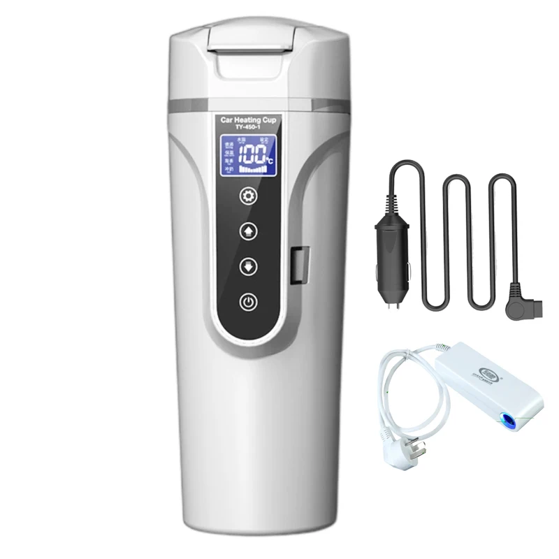 12V/24V/220V LED Portable Car Electric Kettle Outdoor Travel Heated Insulated Coffee Pot Home Stainless Steel Milk Thermos Cup