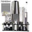 Options B: 1*750/600ml shaker, 1*muddler, 1*strainer, 1*spoon, 1*ice tongs, 1*15/30ml jigger, 3*pourer, 4*straw, 1*recipe book, 1*black stand.