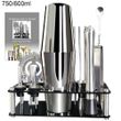 Options A: 1*750ml shaker, 1*muddler, 1*strainer, 1*spoon, 1*ice tongs, 1*15/30ml jigger, 3*pourer, 4*straw,1*recipe book, 1*black stand.