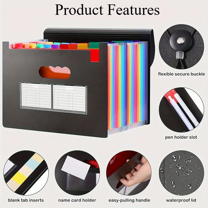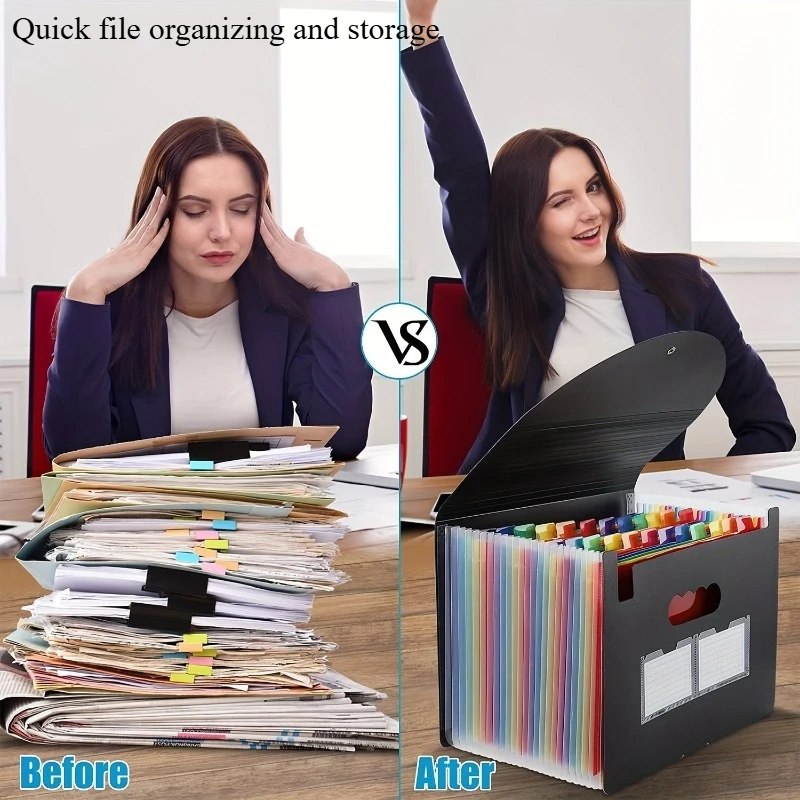 13/25-Pocket Expandable File Folder, Plastic Document Organizer for A4/Letter Paper, Multi-Purpose Standing File Box for Office