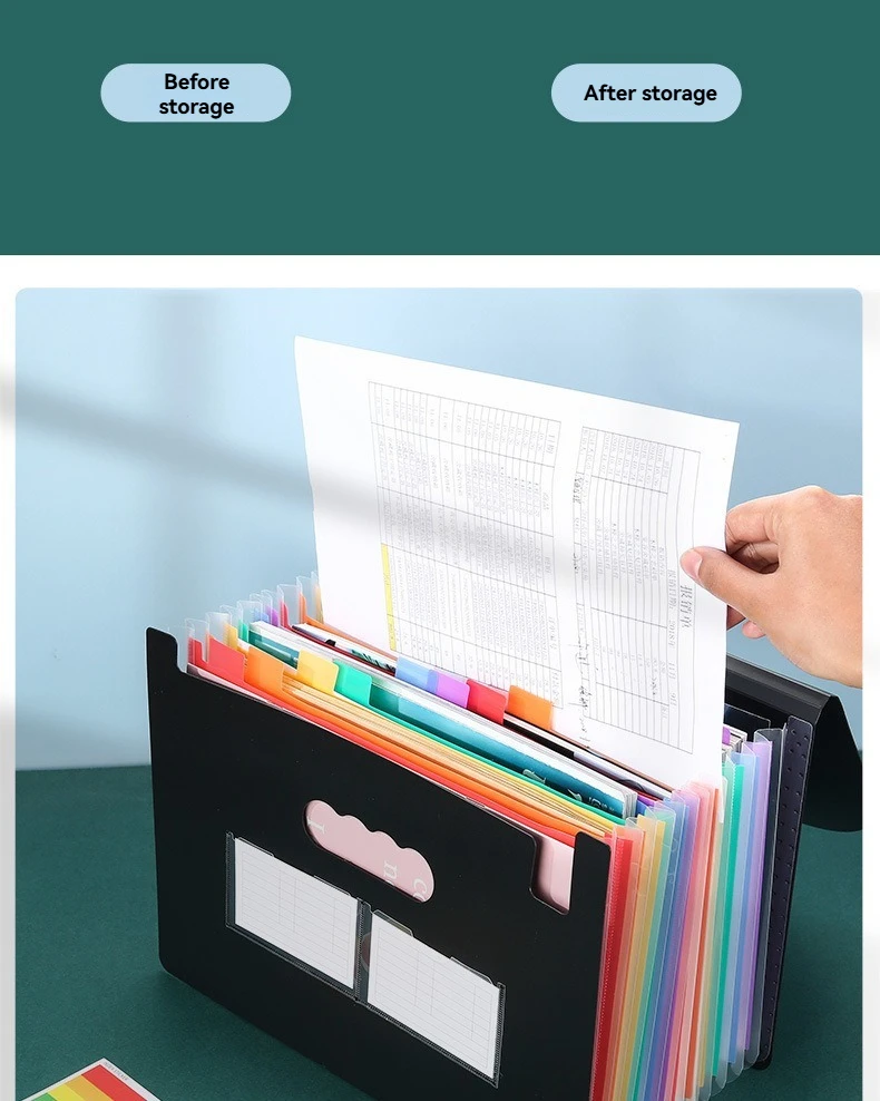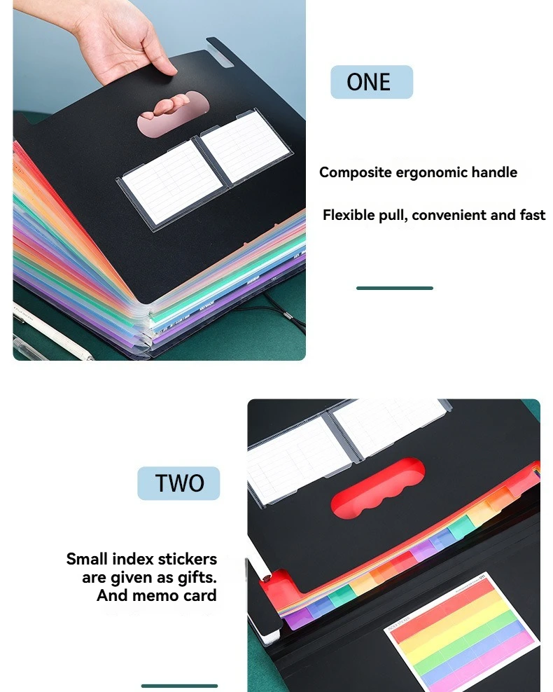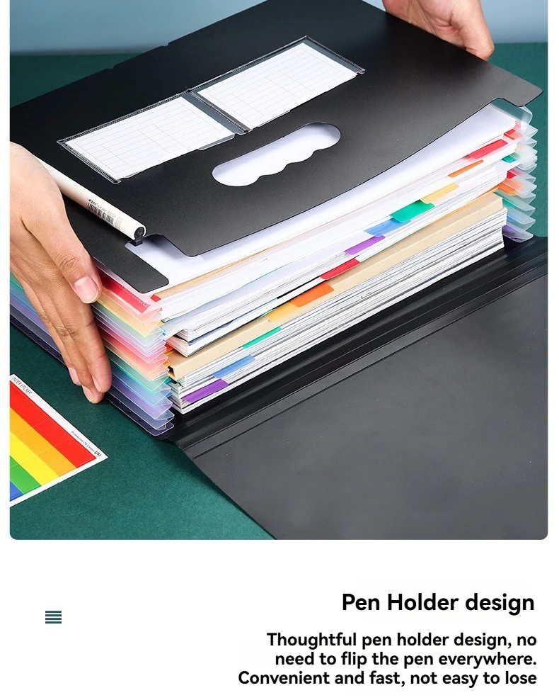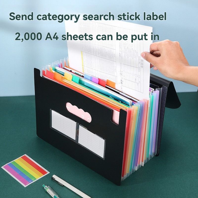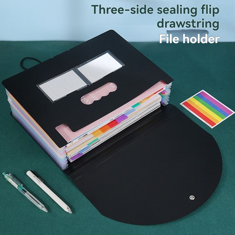 13/25/37 Grid Plastic Three Sided Sealed Hanging Rope Flip Organ Bag A4 Multi-Layer Folder Office File Storage PP File Bag