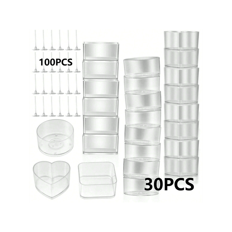 130-piece candle holder and wick set, 30 tea light candle holders, 100 candle wicks, plastic tea light cups, candle holders, wax