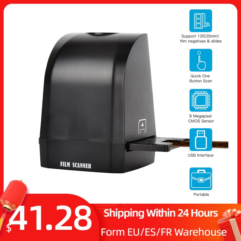 【8 Megapixel CMOS Sensor】: Converts 135(35mm) film negatives and slides into digital JPEG format in seconds. The film scanner supports scan, delete, mirror, rotate, save, color & brightness adjustment function. Scan quality approx. 2400dpi/4800dpi(Interpolation).
