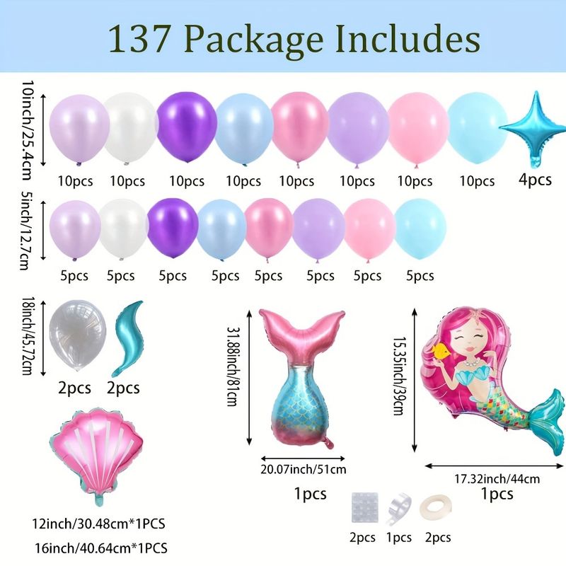 Set of 137 Mermaid Balloon Garland Arch Kit, Assorted Color Balloon Collection, Decorations for Mermaid Themed Party, Celebration Decor for Birthday Party, Suitable for Indoor and Outdoor Use