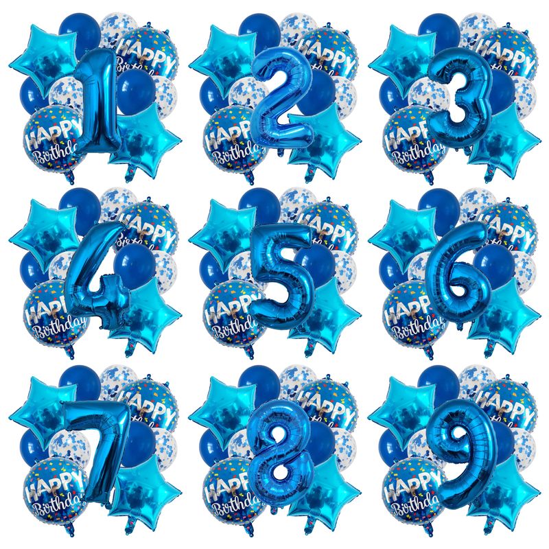 Boy 1 2 3 4 5 6 7 8 9 10 Years Old Birthday Balloons Blue Balloons Mixed Number Balloons Birthday Party Decorations