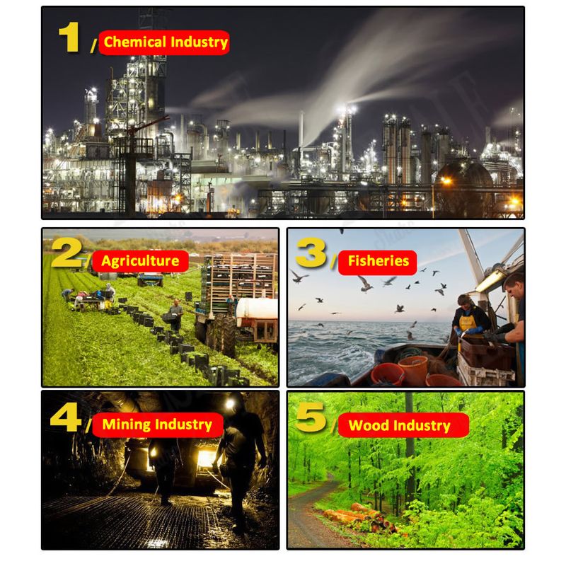 Agriculture, Fisheries, Mining Industry, Wood Industry, Printing Industry, Laboratory, Gardening, House Cleaning etc.