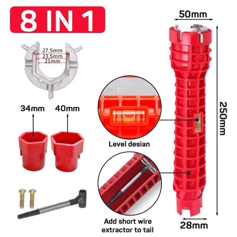 [Extra-long design] Make it easier to turn hard-to-reach mounting nuts on faucets, sprayers and ball cocks.Strainer basket attachment holds drain unit in place while tightening strainer nut.[Multipurpose]The faucet wrench for common faucet installations and sink strainers with unique insert provides a variety of common nut sizes. All this make this muti-purpose wrench a essential gadgets for your family.[Open Slot Style] Allows for easy access over existing supply lines.
