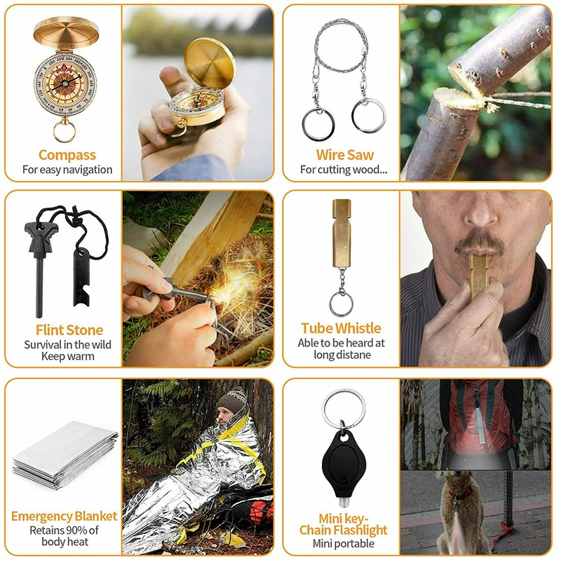 COOL GIFT - Everyone is likely to encounter some urgent situations. The Survival Kit is a must-have tool in your life. Whether you are camping, hiking, adventurous, living, or trapped in a car, you can use it in an emergency. A perfect gift for you who are adventurous. You can also exercise the courage of a child. You can prepare a few more at home and in the car.