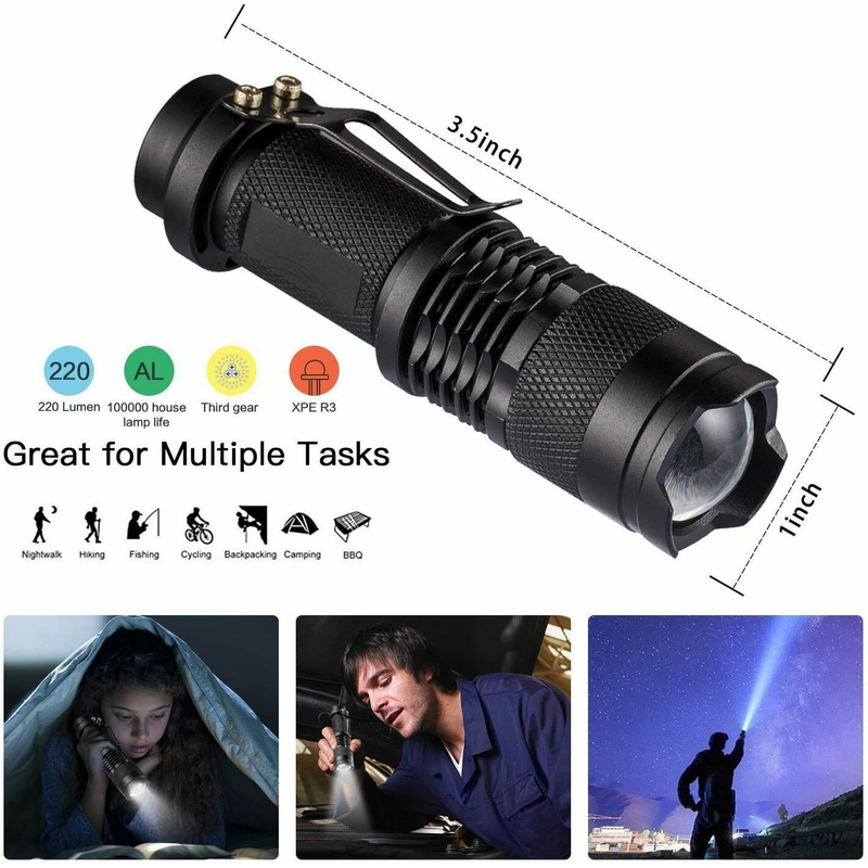 9. Tactical Torch Flashlight: A compact handheld flashlight that magnifies the beam or amplifies the illumination. With ultra-high-brightness LED lights, you can run for a few hours with just one AA battery (AA battery not included).