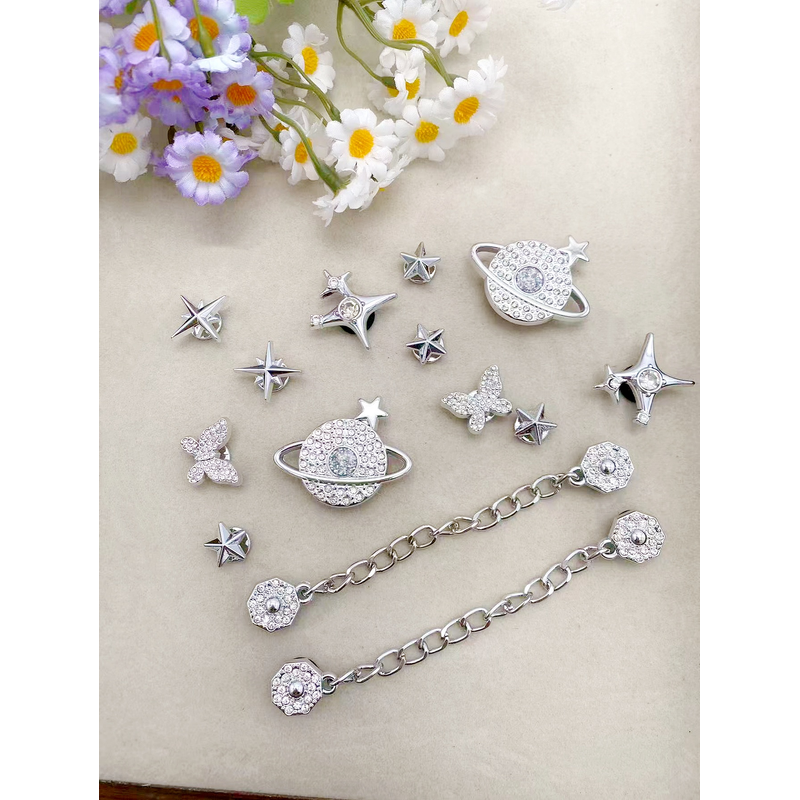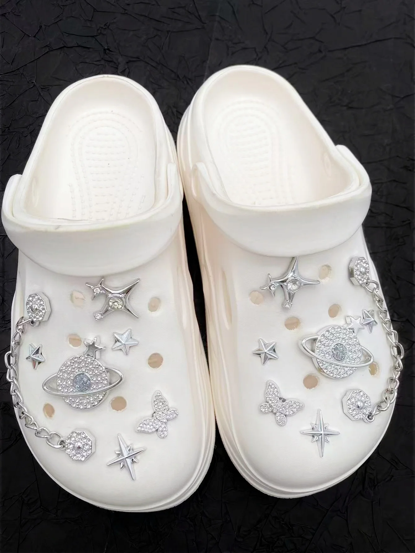 14 pieces of silver shoes decorated with DIY casual shoes-interesting and multifunctional personalized shoes.