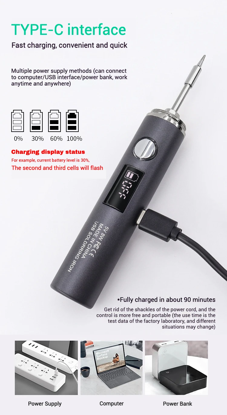 850/1400mah USB Soldering Iron Wireless Charging Electric Solder Iron Fast Charging Rechargeable Portable Repair Welding Tools