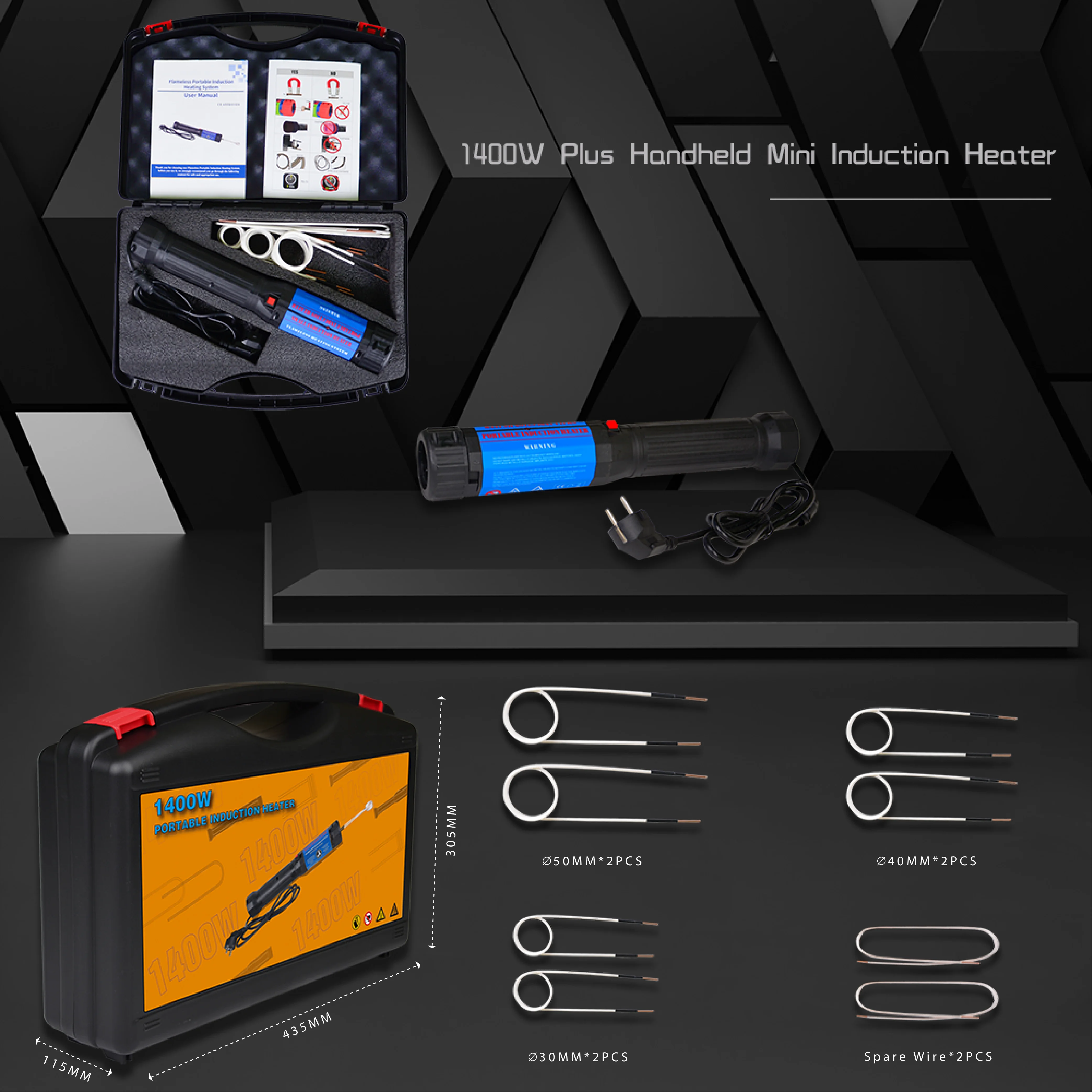 Induction Coil Diameter & Quantity: Ø30mm*2PCS, Ø40mm*2PCS, Ø50mm*2PCS, Spare Wire*2PCS