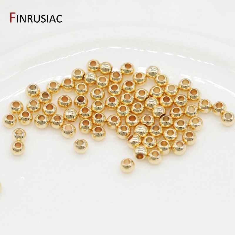 14K Gold Plated Round Smooth Ball Spacer Beads For Jewellery Making Supplies, Brass Separators Beads For DIY Needlework Craft