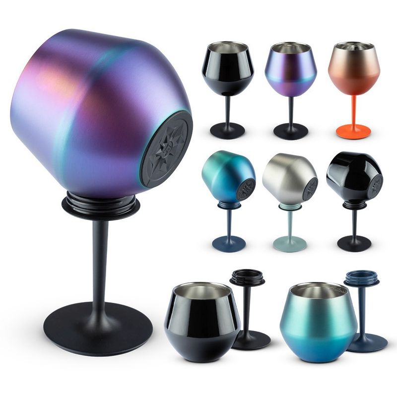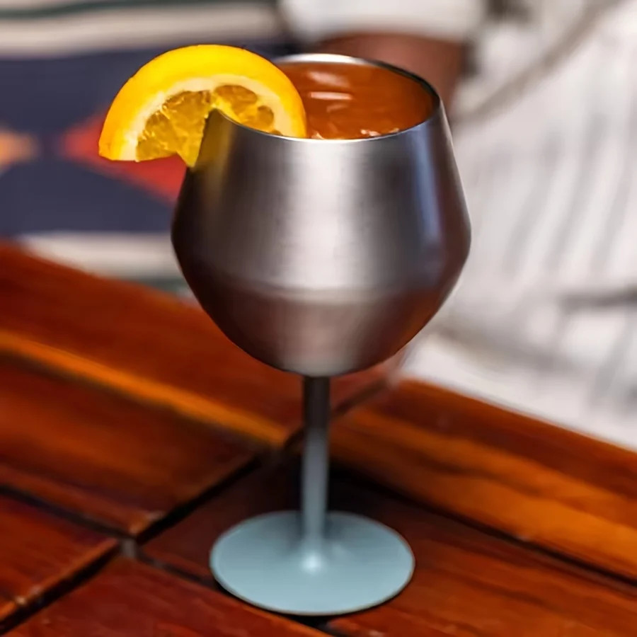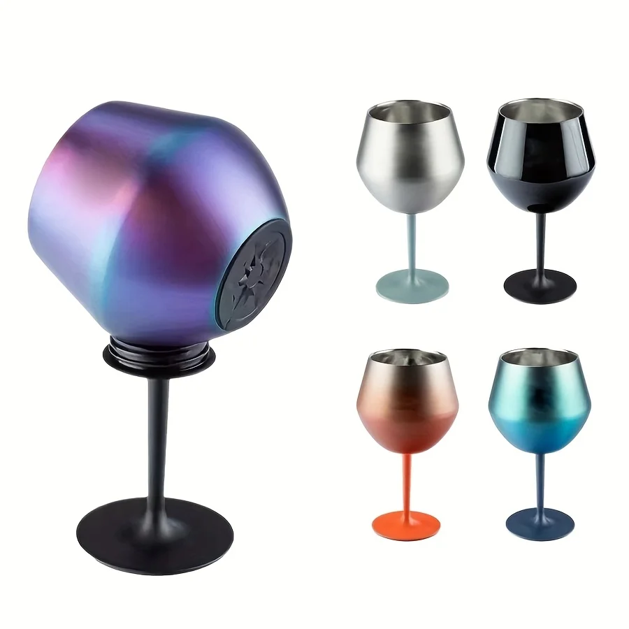 14oz Stainless Steel Wine Glass Detachable Silicone Base Double-layer Insulated Cup for Hot & Cold Drinks Egg Shape Stemmed Cup