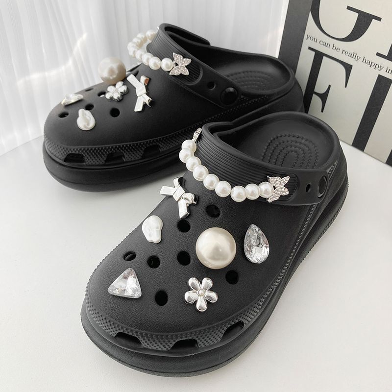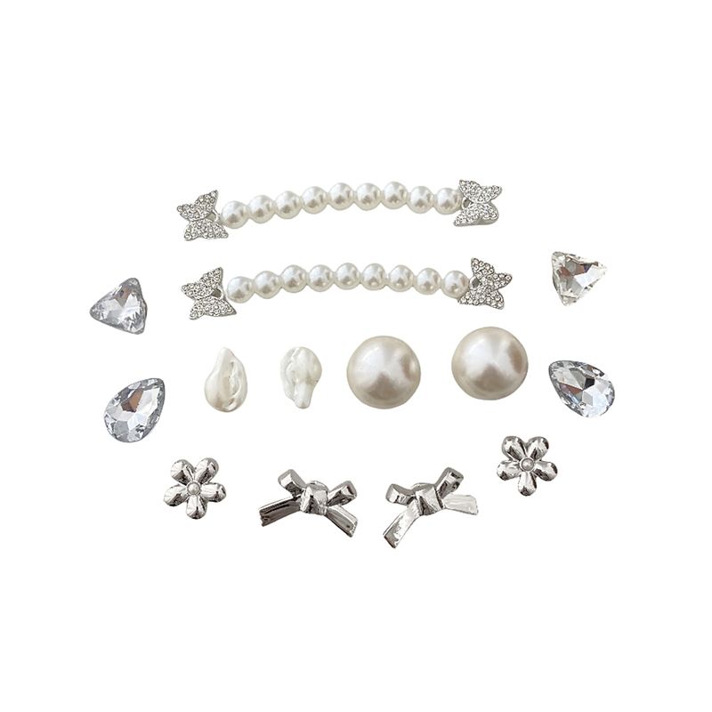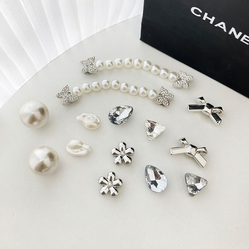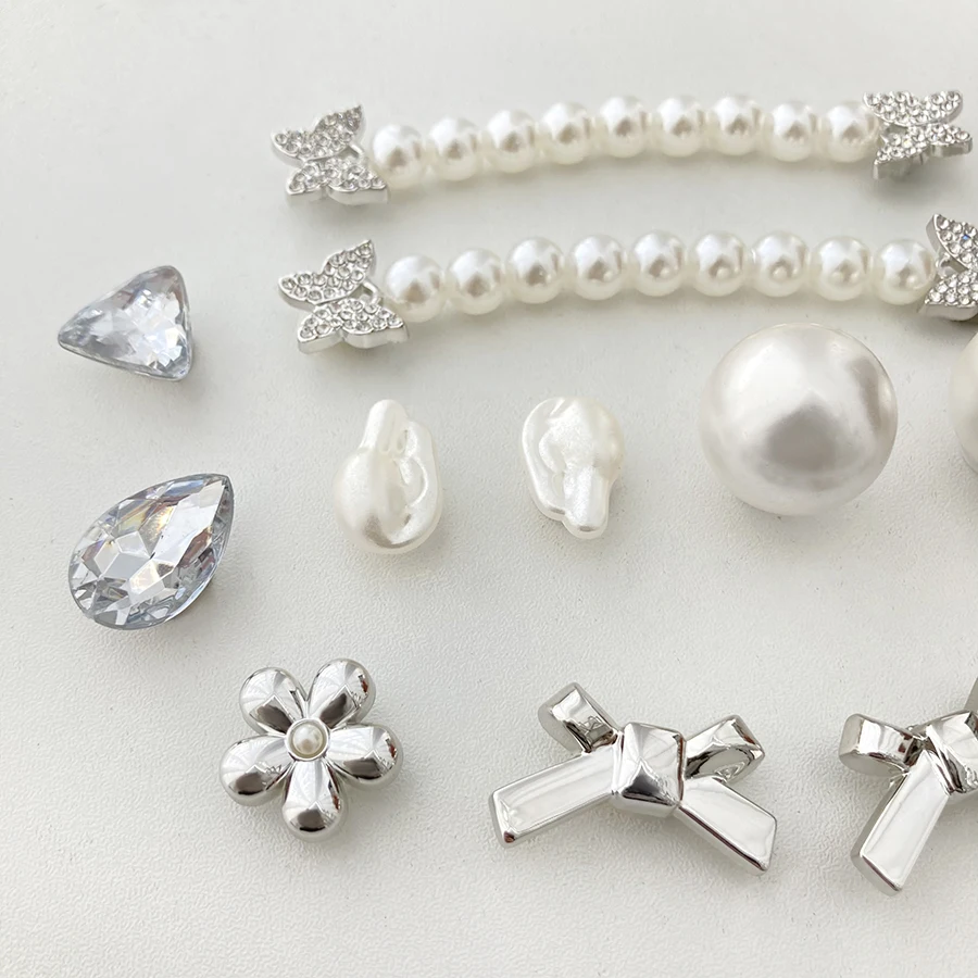14pcs Bling Shoe Charms Big Pearl Diamond Shoe Chains DIY Shoe Decoration Charms for Party Gift Idea Suitable For Garden Shoes