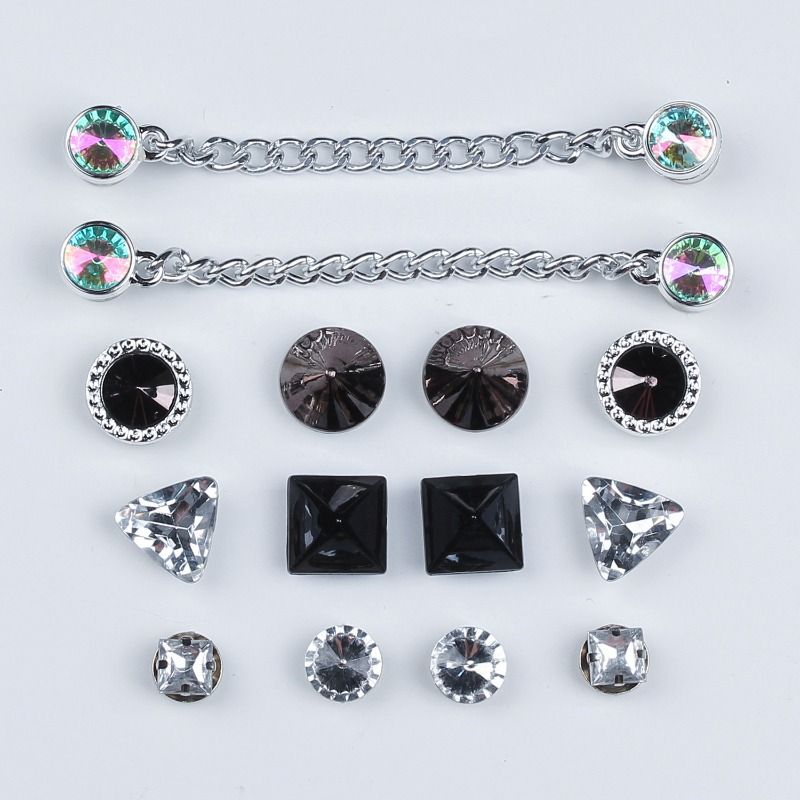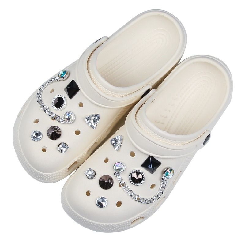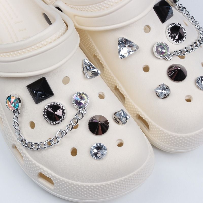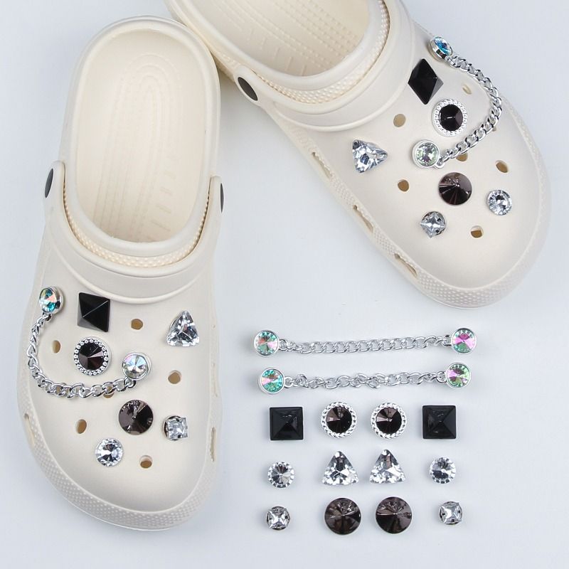 14PCS Shoe Charms ABS Accessories Decorations DIY Clog Ornament Glitter Rhinestone Buckle Star Chain Pins For Women Garden Shoes