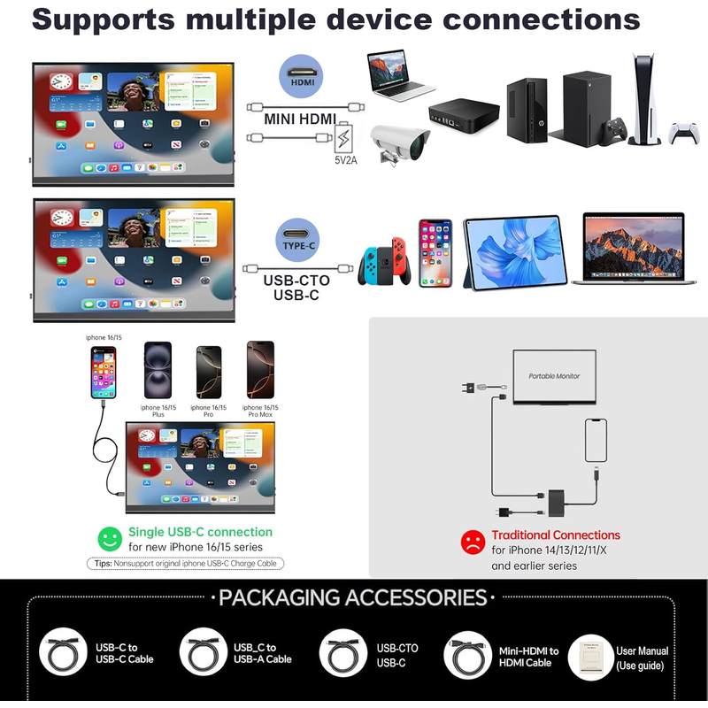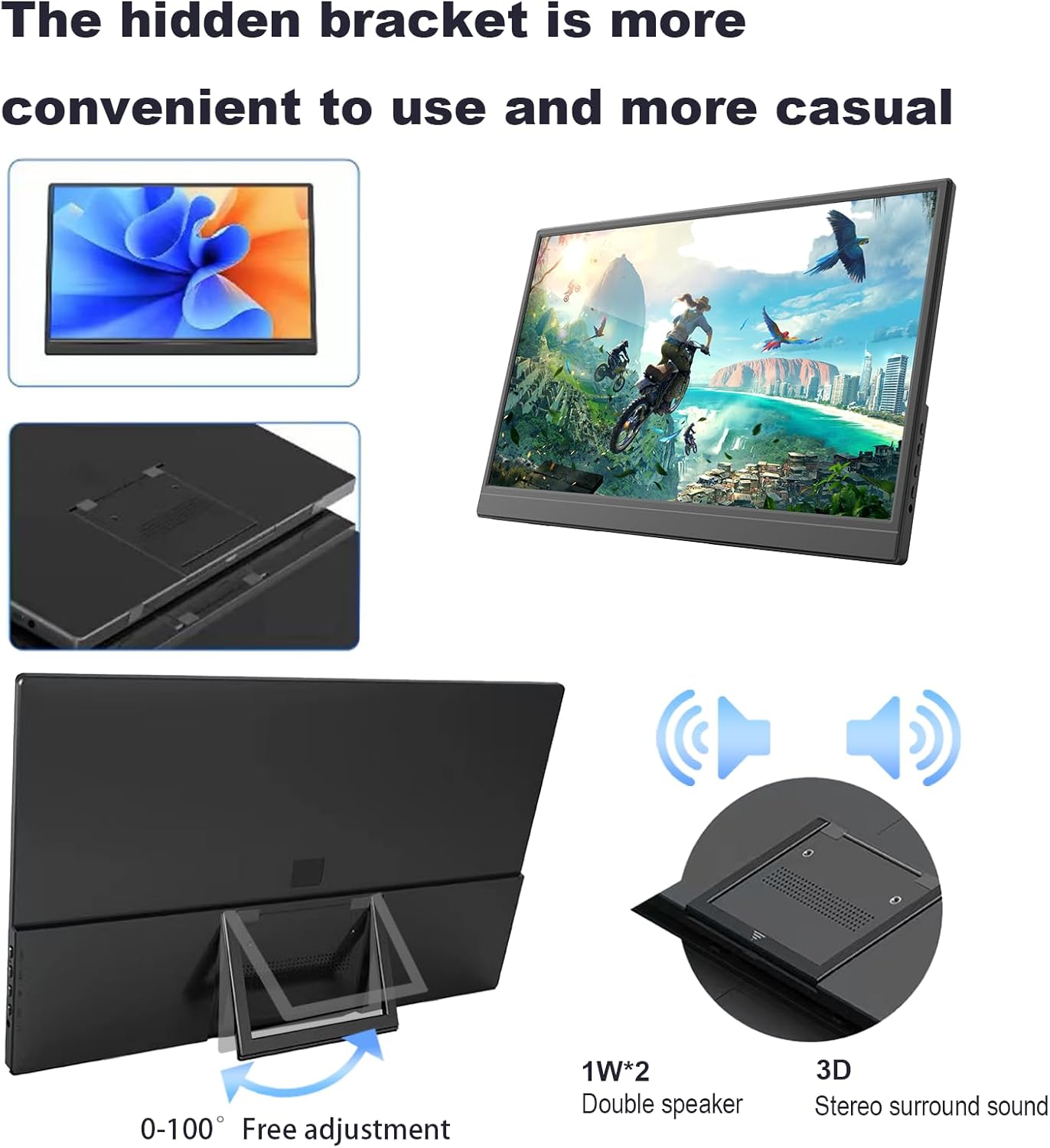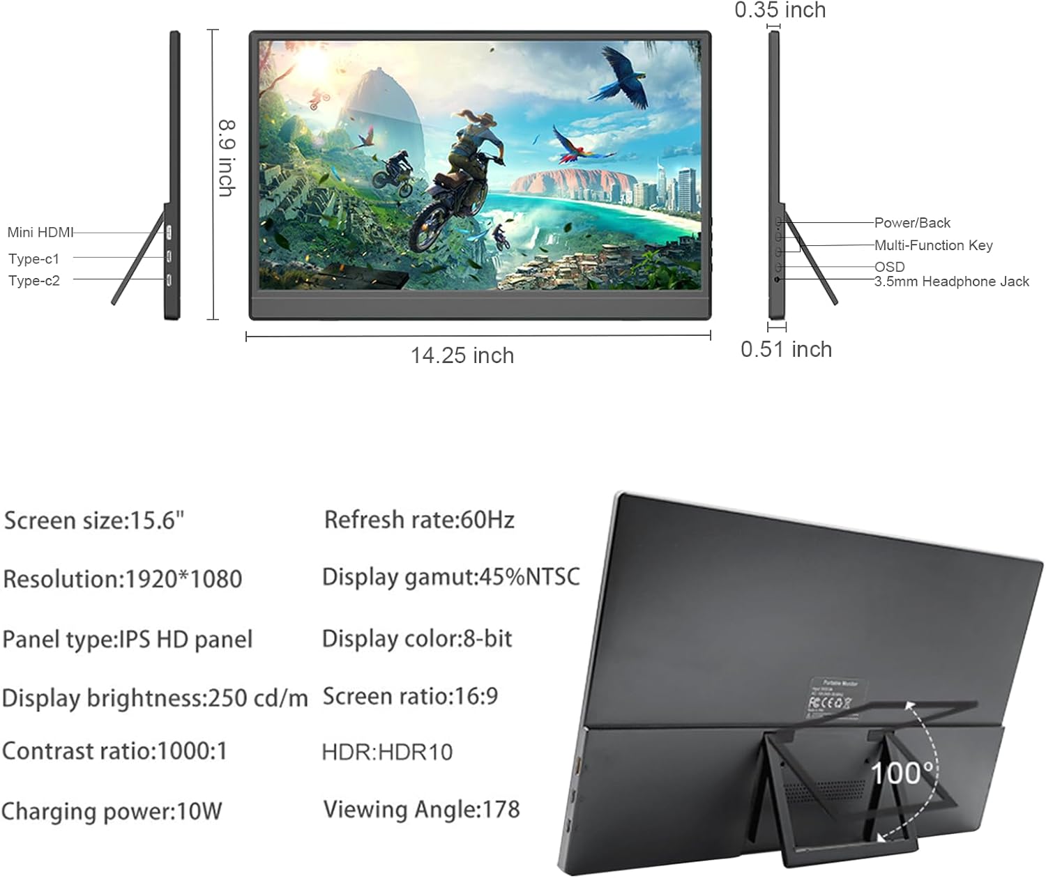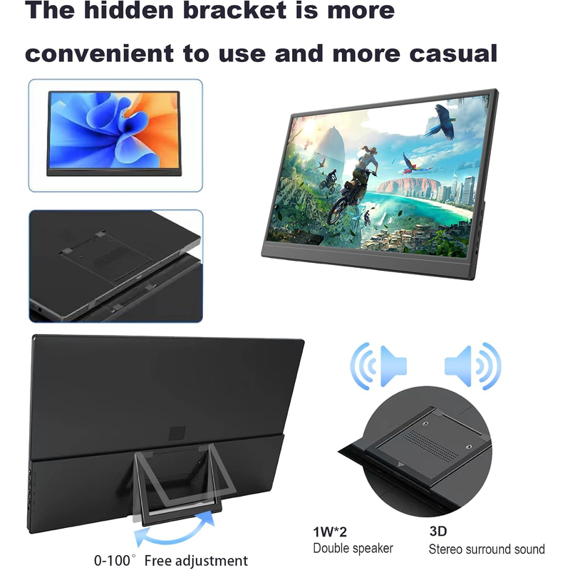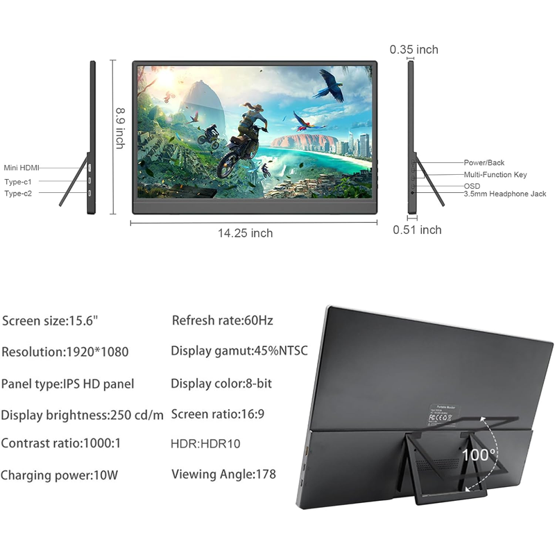 Screen size: 15.6 Inch LCD IPS Screen, 178 degree full viewing angle