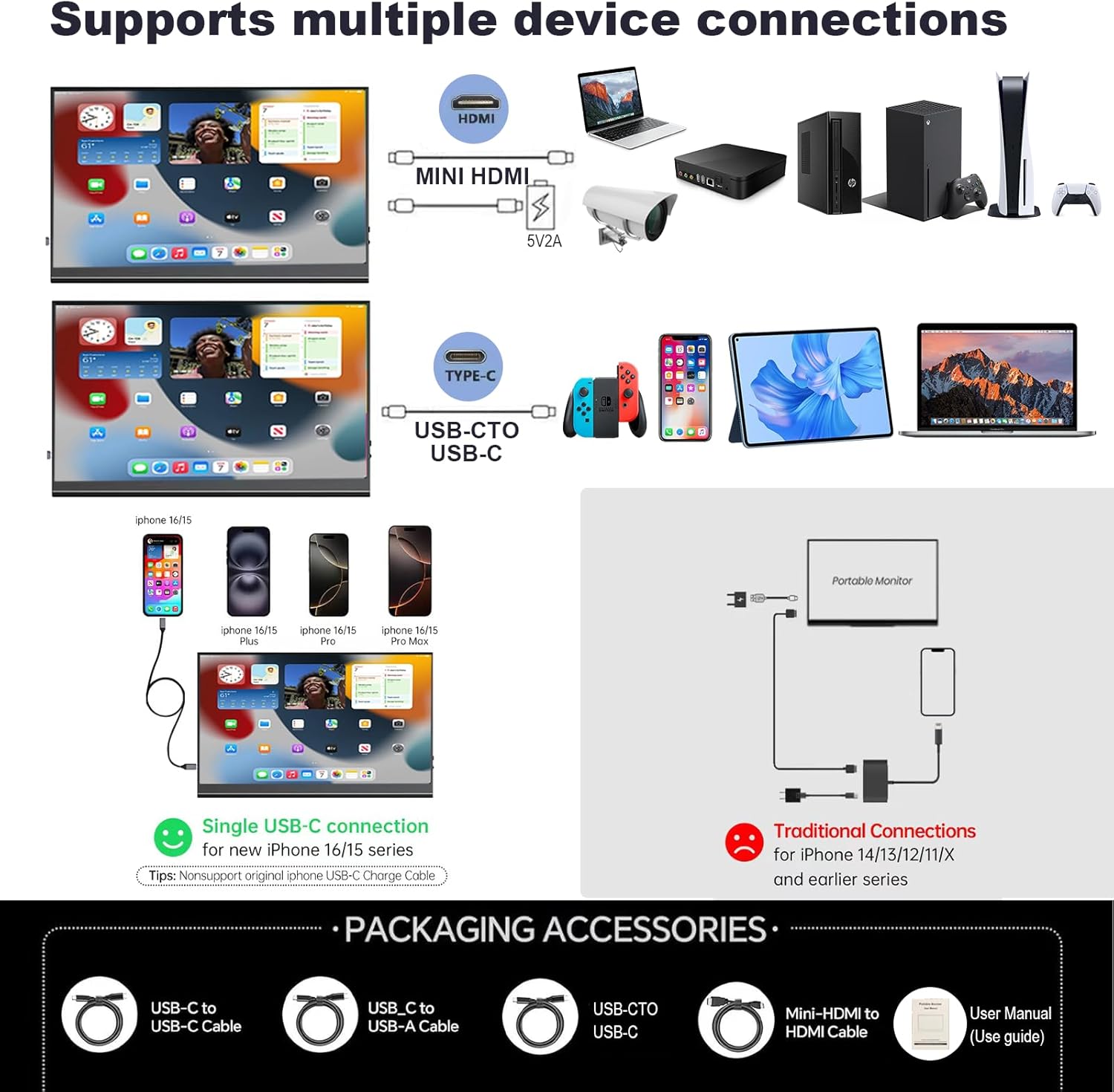 Type-C*2: Full function USB-C *1(Signal / Power ), Power supply USB-C*1 (Only for Power)