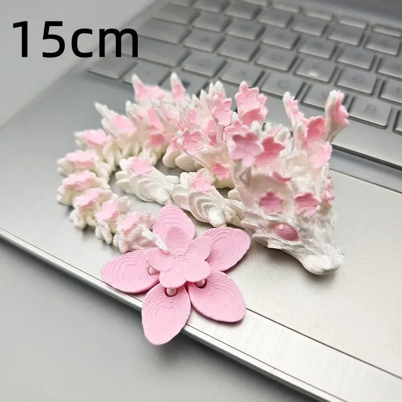 15/25cm 3D Printed Love Cherry Blossom Dragon Movable Joint Dragon Model Gifts Home Office Desktop Ornament Landscape Craft