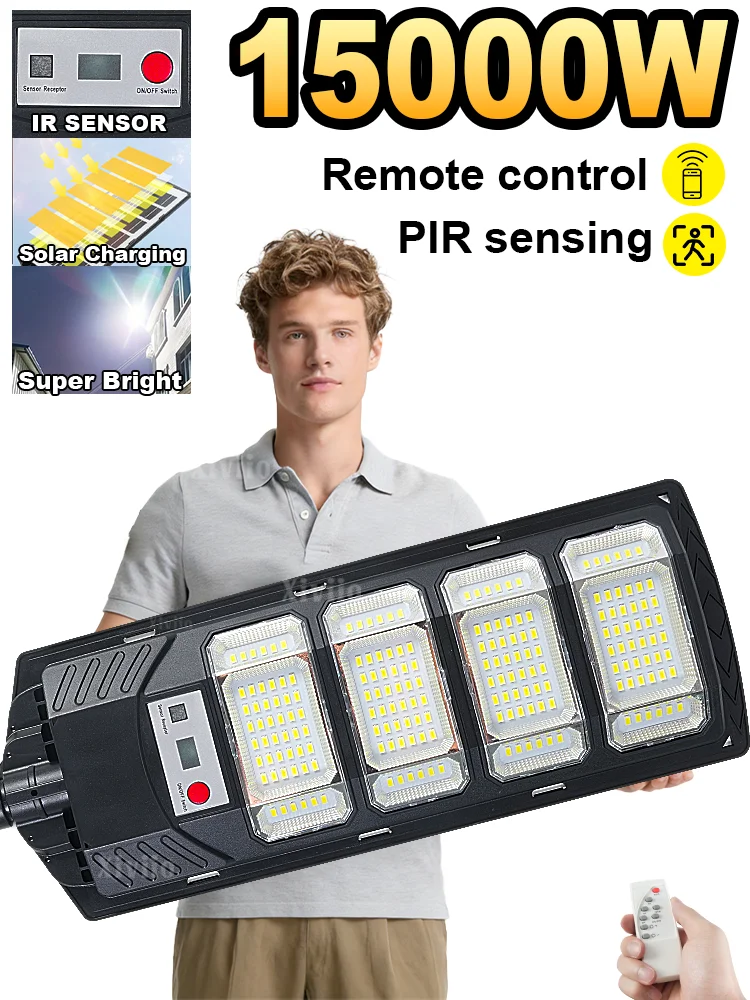 15000W Outdoor Solar Lamp Ultra Powerful Solar Street Light 320° Wide Range Dusk to Dawm Lighting IR Sensor Backyard Garden Lamp