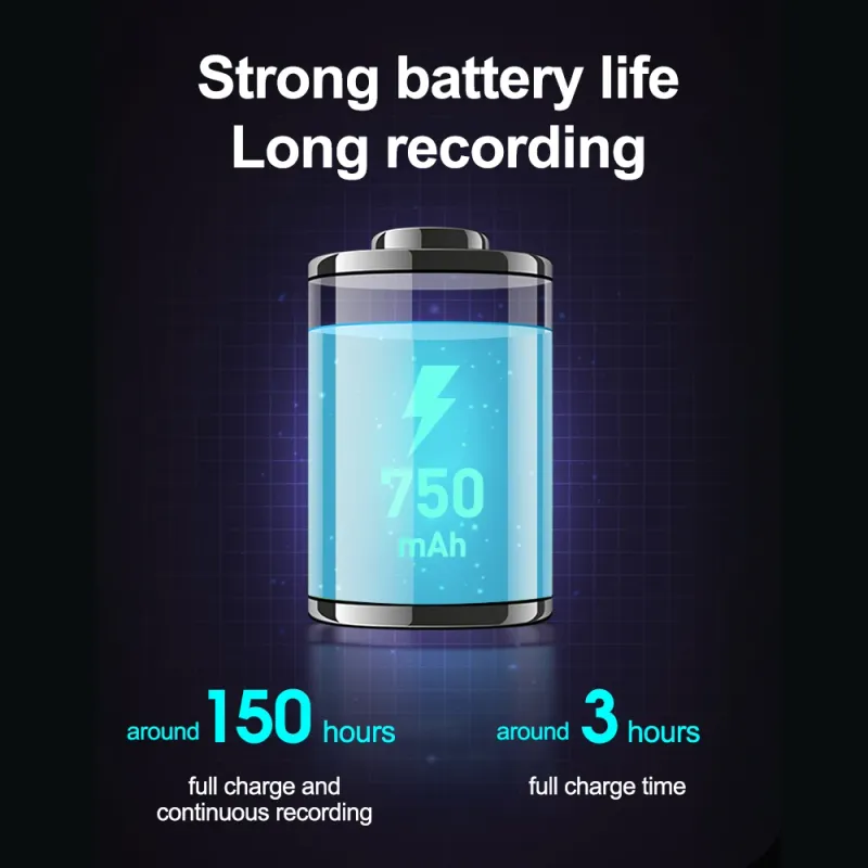 With large memory and battery capacity, it has a large storage for recording and can work for a long time.