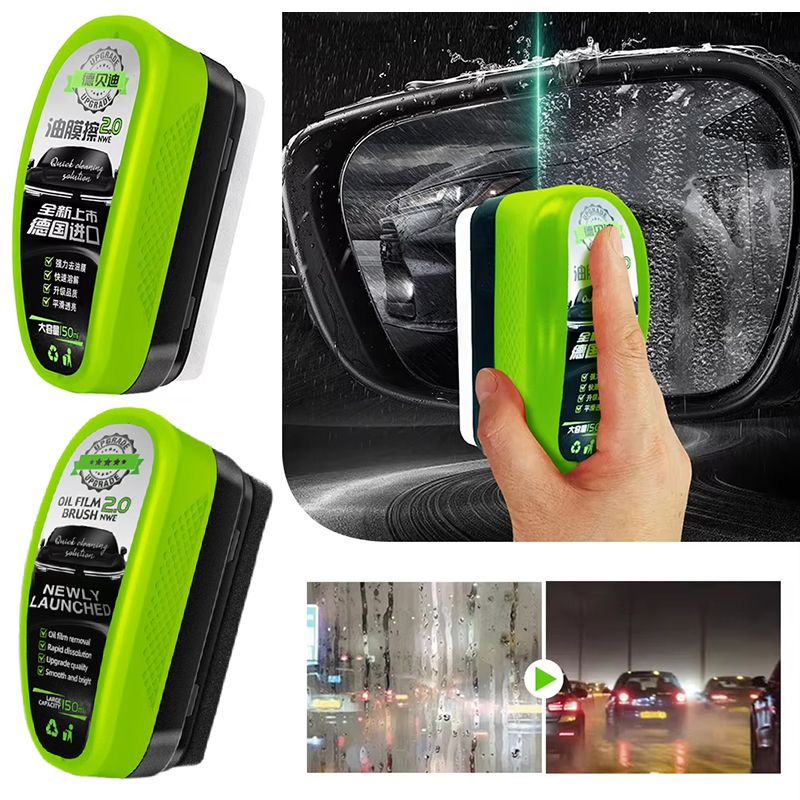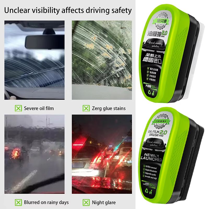 Before use: Rainwater forms a water film on the glass to block the view; after use: raindrops fall quickly and do not stay on the glass surfaces .Remove the oil film on the glass surfaces with a glass oil film cleaner to make the glass clearer.