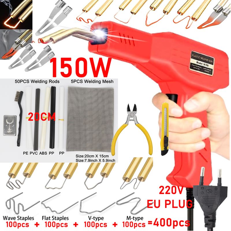【Wide Applications】: Plastic repair kits can repair 98% of plastic products on the market. ---Tips: This product is an upgraded 150W welding gun.