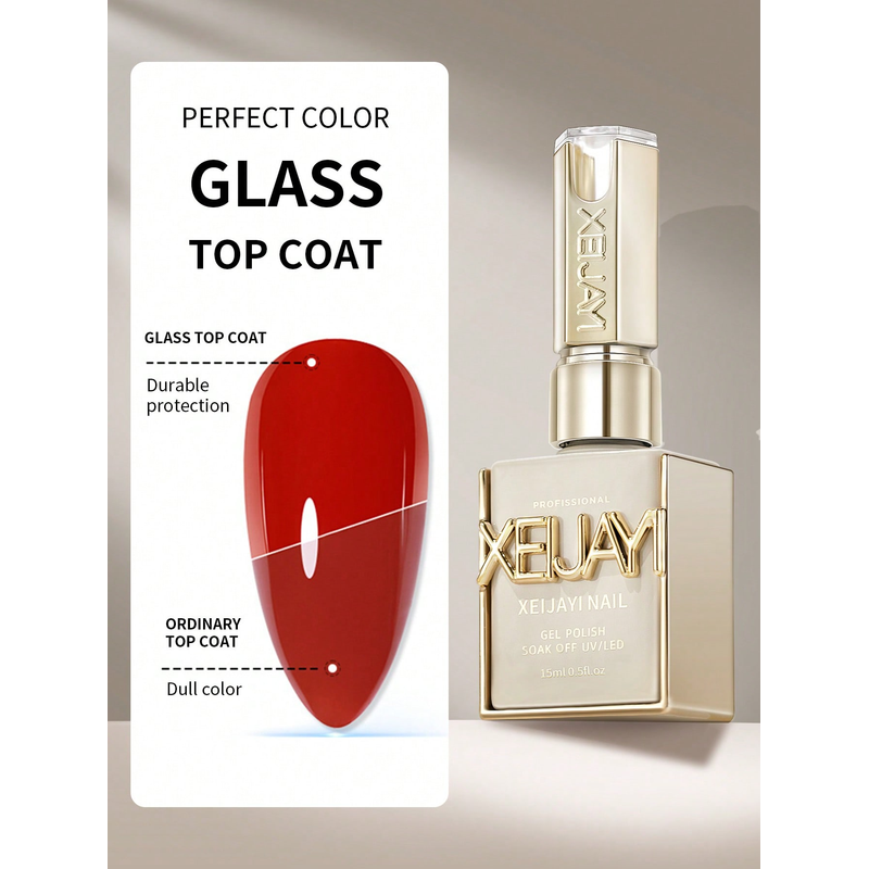 15ml Glass Top Coat Long Lasting Clear Rubber Top Coat LED UV Strengthen Nails High Gloss Top Finish Gel Nail Polish