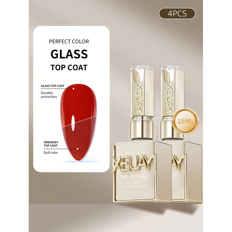 15ml Glass Top Coat Long Lasting Clear Rubber Top Coat LED UV Strengthen Nails High Gloss Top Finish Gel Nail Polish