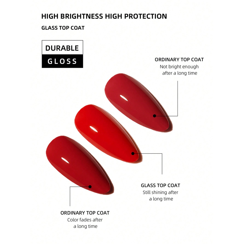 15ml Glass Top Coat Long Lasting Clear Rubber Top Coat LED UV Strengthen Nails High Gloss Top Finish Gel Nail Polish