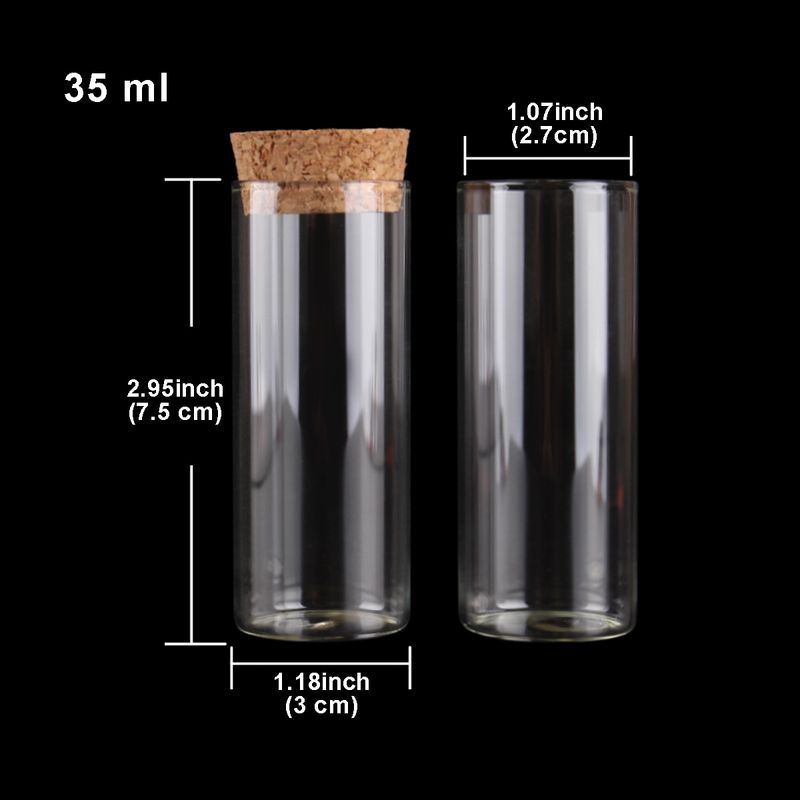 15ml/25ml/30ml/35ml/40ml/45ml/50ml/55ml/60ml/80ml/100ml Small Glass Test Tube with Cork Stopper Dragees Jars Bottles 24 pieces