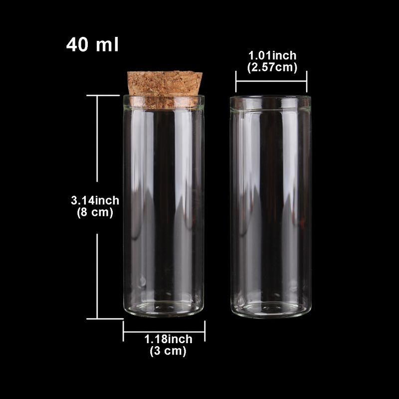 15ml/25ml/30ml/35ml/40ml/45ml/50ml/55ml/60ml/80ml/100ml Small Glass Test Tube with Cork Stopper Dragees Jars Bottles 24 pieces